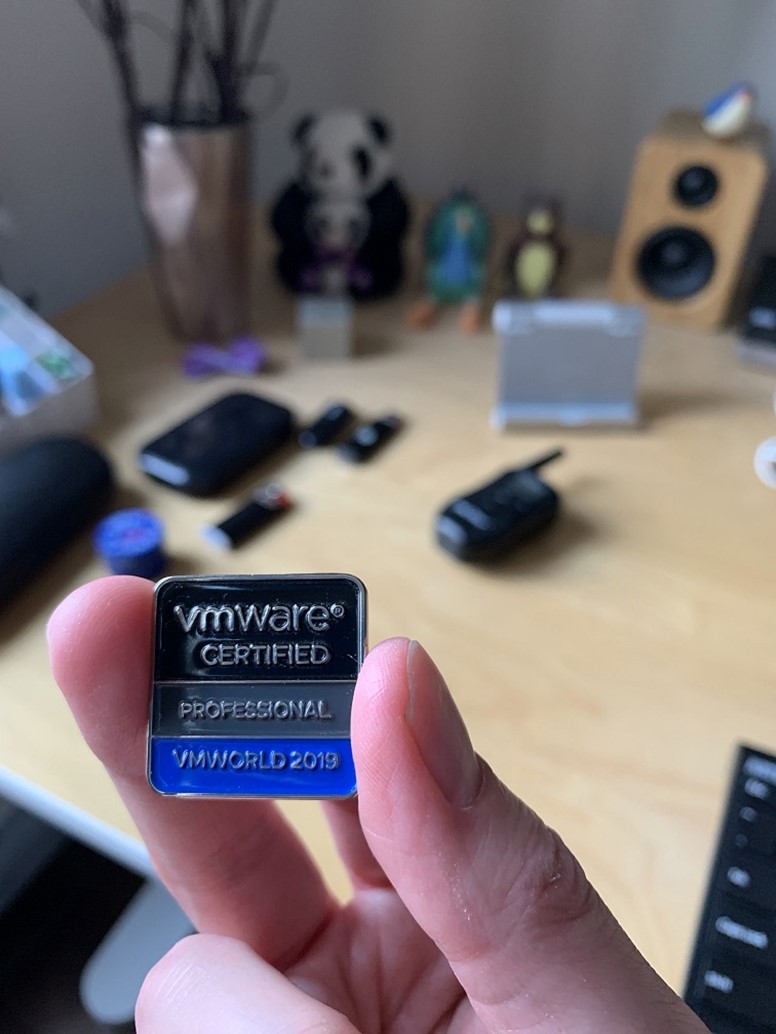 My path to the VMware VCP DCV cert / status started all the way back in 2019. I didn’t actually start studying in 2019, but I was given this pin from my former co-worker Pascal Proulx after he attended the VMWorld 2019 event.