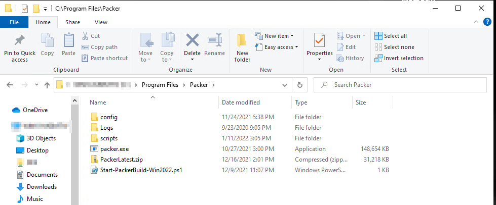On your windows machine create a directory structure as shown below, starting with c:\Program Files\Packer
