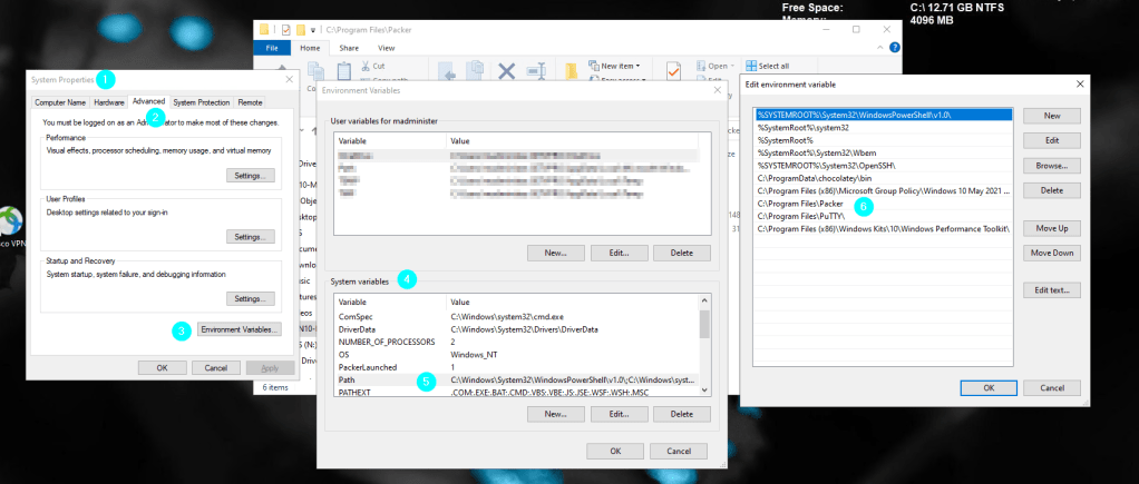 open Powershell as admin, then CD to c:\Program Files\Packer
