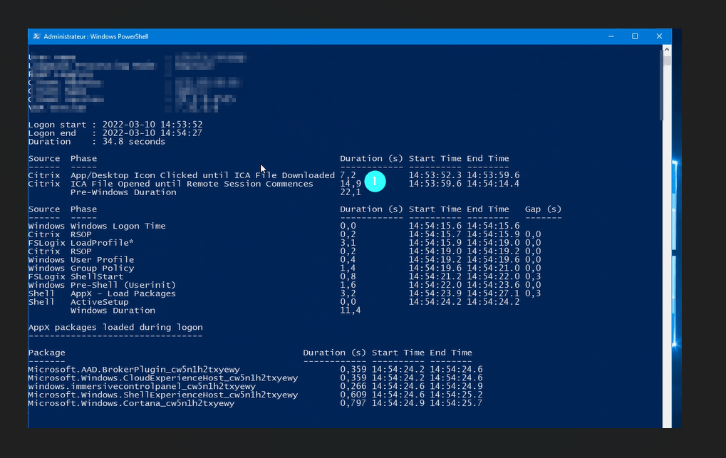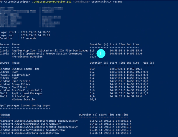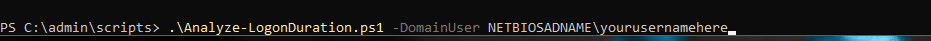 Next, you will want to capture additional metrics via the ControlUP analyze logon duration script you downloaded in step 2. Once logged on fully to your VDA session , open Powershell as admin, and CD to the directory where you downloaded the analyze_logonduration.ps1 script