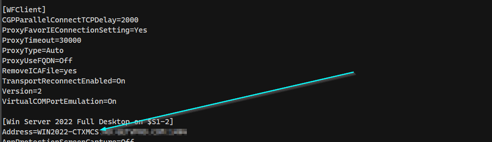 Logon to Citrix Cloud again, open the ICA logging file you set via the above Citrix KB for enabling workspace app ICA logging. Within the ICA log file, CTRL-F to ‘address=’, you should see the address appear as the name of the VM you’re connecting to. Here’s a snap of a working direct workload ICA connection: