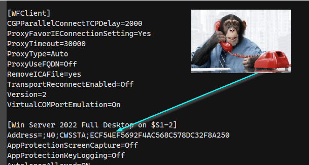If it’s NOT working, and you took the long route to your internal VDA via Citrix Cloud, you’ll see the familiar STA ticket reference in the ‘address’ field. This is a clear indication of 🐒🐵biznuzz. It happened to me when I was first testing this on my lab, I had set an incorrect public IP / subnet re-check your network location and re-test to resolve monkey business