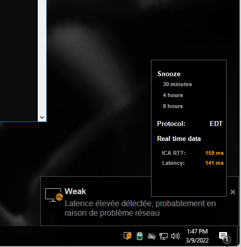3rd: install Citrix Connection quality indicator on your target VM, as above, you should have this in your golden image already, it’s free / very useful. If not, you can RDP to your target VM with an admin account and install it, you’d then need to configure the related GPO to enable it.