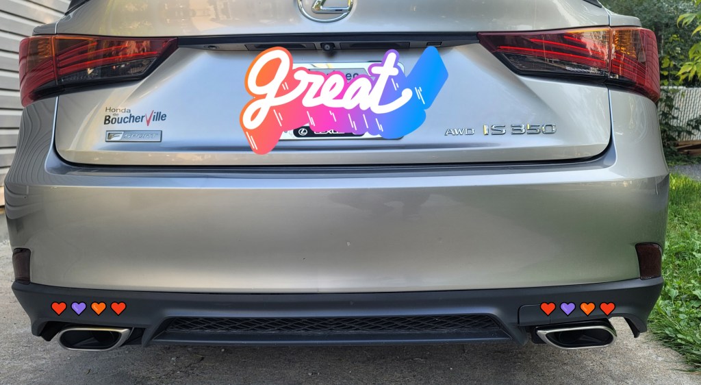 TBH, I didn’t fully understand how annoying driving a car with a muffler delete would be long term. I made peace with it for a while. However, with the purchase of the IS 350, I fell in love with driving again ; drives to the grocery store , night time drives listening to Eric Johnson, day trips, drives out of town for work. I’ve prob put about 3000 KM for 2023 so far (it’s now late September)