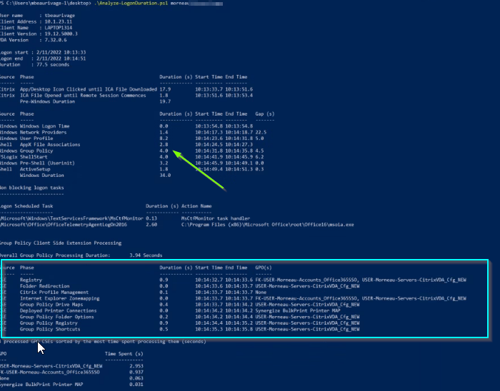 Once you’ve taken action on your GPP/GPO settings , re-run the Analyze-LogonDuration script to confirm that your change was positive / negative / neutral