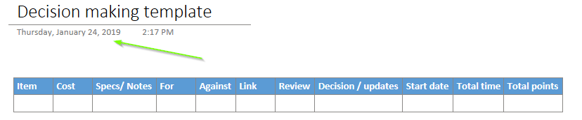 Whenever I need to make considered decision, I start with a template saved within my MS OneNote which I call the “decision making chopping block”. The template looks like this