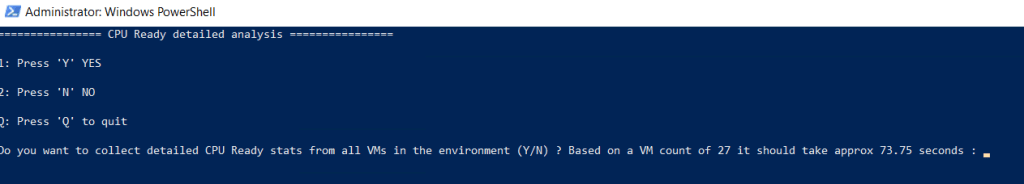 PowerCLI is the Powershell-based framework that VMware provides us for interfacing with vCenter/ESXi remote instances. I’ve been using it for years now, and for the most part, anything you can grab via the full vSphere web-client you can collect via PowerCLI. In fact, I’d say the section that collects CPU READY time is actually a bit easier to read via my PowerCLI script than via vSphere web-client