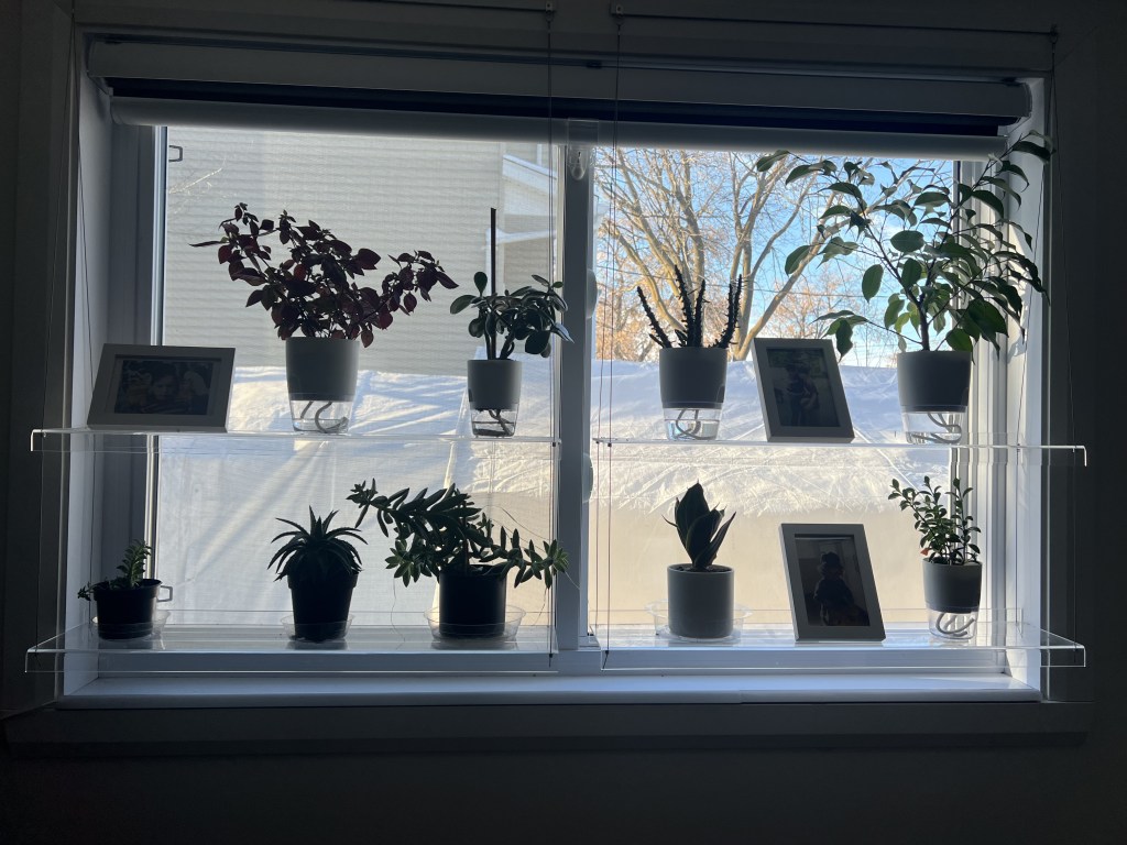 As the plant survival rate moved up, I got more comfortable buying more plants to put on an this super cool hanging acrylic window shelf (Amazon link) I bought in 2022