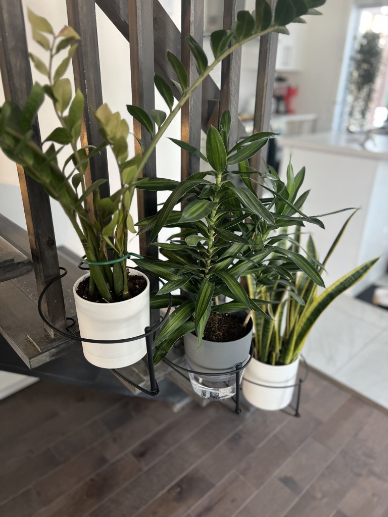 In January of 2025, I added these nifty floating plant holders to the railings that lead to the second floor of my house (AliExpress link)