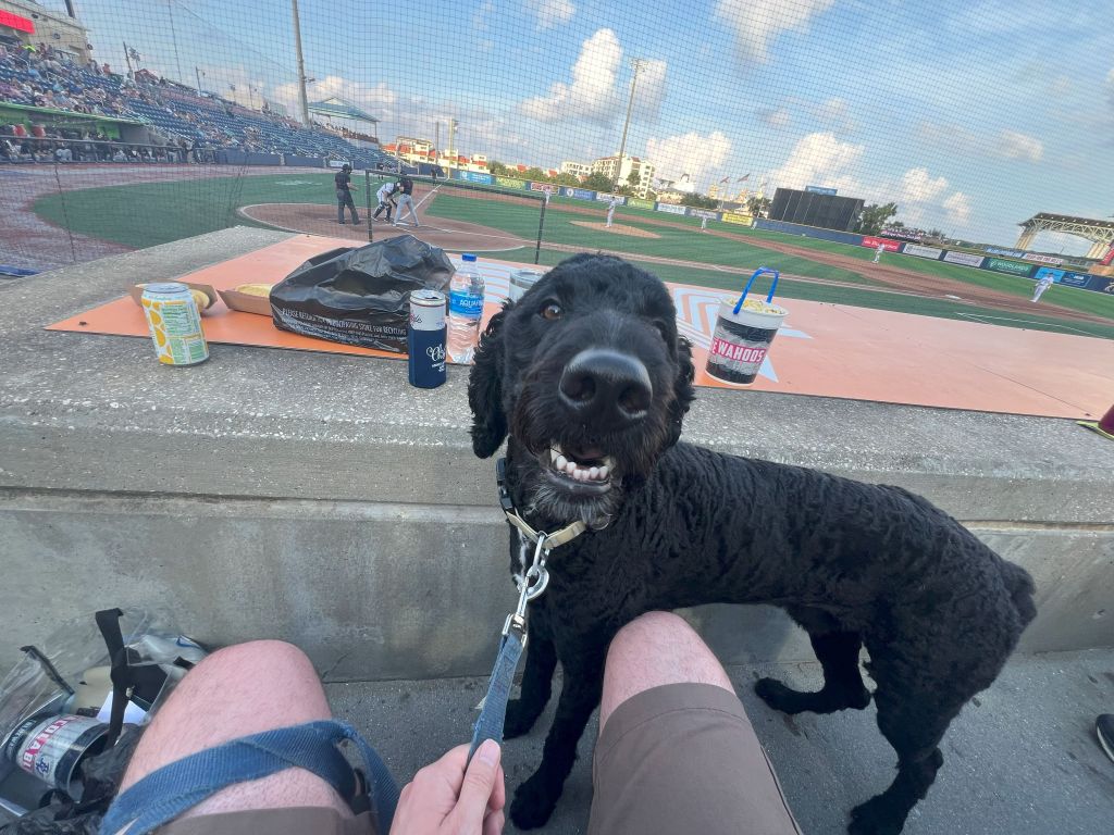 At night, we attended a AAA baseball game ; the Pensacola Blue Wahoos. I’m not a big sporstball dude, but I enjoyed that the event was low-key. It wasn’t non-stop noise like you get at big league stuff, where the crowd is cheering all kinds of stuff, and you have to get up to do that stupid ‘wave’ thing. Tux the wonder dog also came long and caught a ball ๐ค