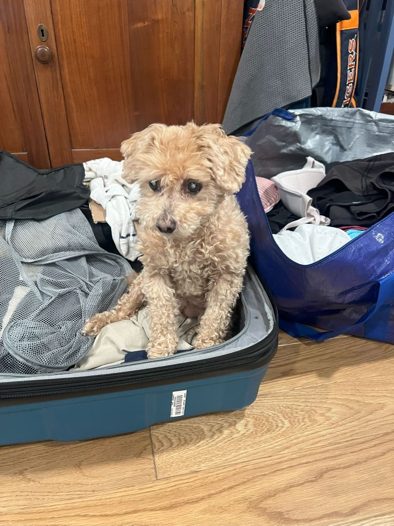 Up to this point, my little Coffee bean had done pretty well with the other 2 dogs, but, at some point, she did take refuge in my suitcase ๐