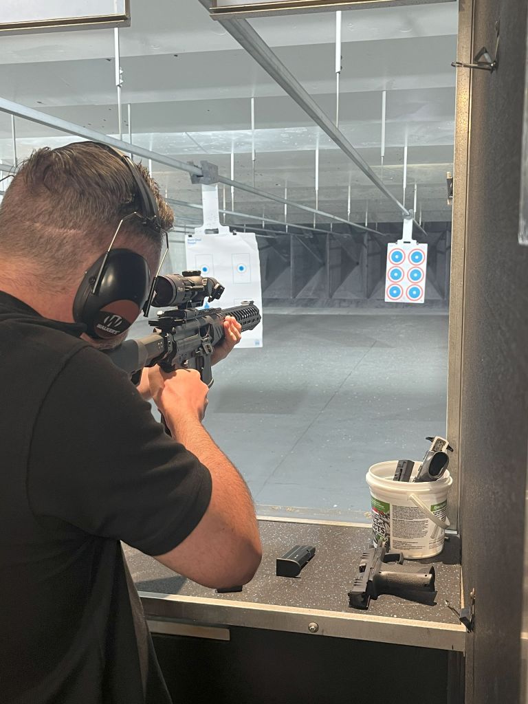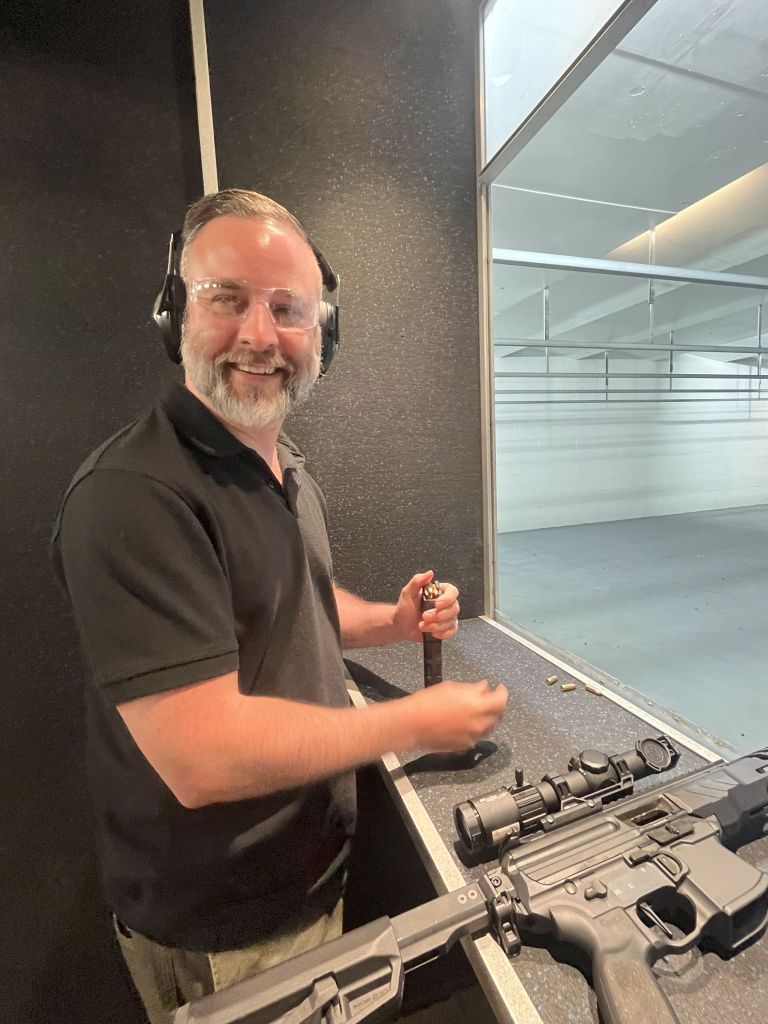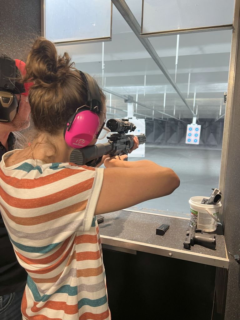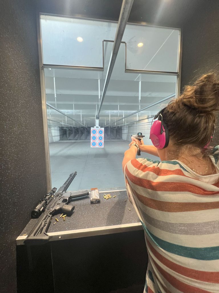 I visited an indoor shooting Range in Pensacola. After a brief intro course, we hit the range and got to shoot 2 different types of pistols (9mm and .22). The highlight, though, was the mighty AR-15 in 9mm format. So much fun!